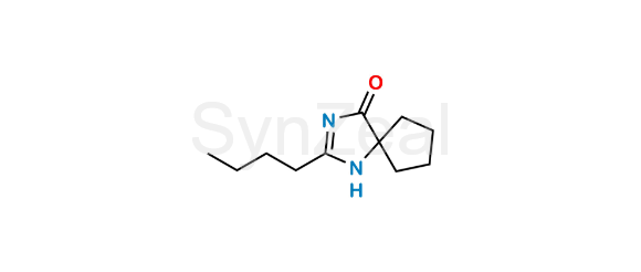 Irbesartan Impurity 1 is chemically 2-Butyl-1,3-diazaspiro[4.4]non-2-en-4-one. Irbesartan Impurity 1 is supplied with detailed characterization data compliant with regulatory guideline. Irbesartan Impurity 1 can be used for the analytical method development, method validation (AMV), Quality Controlled (QC) application for Abbreviated New Drug Application (ANDA) or during commercial production of Irbesartan.