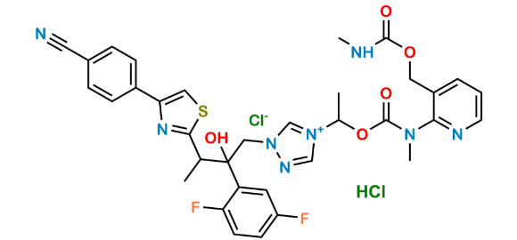Nome Químico: 1-(3-(4-(4-cyanophenyl)thiazol-2-yl)-2-(2,5-difluorophenyl)-2-hydroxybutyl)-4-(1-((methyl(3-(((methylcarbamoyl)oxy)methyl)pyridin-2-yl)carbamoyl)oxy)ethyl)-1H-1,2,4-triazol-4-ium chloride hydrochloride