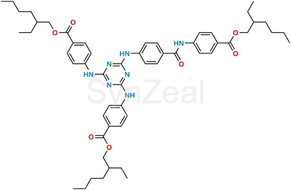 Nome Químico: Bis(2-ethylhexyl) 4,4'-((6-((4-((4-(((2-ethylhexyl)oxy)carbonyl)phenyl)carbamoyl)phenyl)amino)-1,3,5-triazine-2,4-diyl)bis(azanediyl))dibenzoate