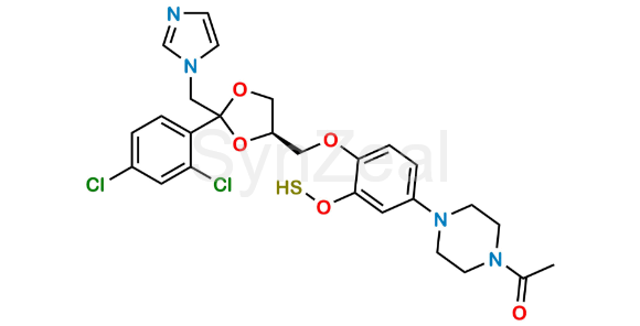 Nome Químico: 1-(4-(4-(((4R)-2-((1H-imidazol-1-yl)methyl)-2-(2,4-dichlorophenyl)-1,3-dioxolan-4-yl)methoxy)-3-mercaptooxyphenyl)piperazin-1-yl)ethan-1-one