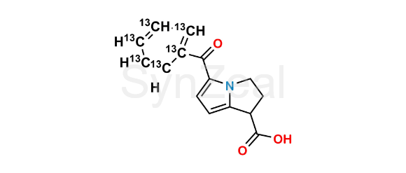 Ketorolac-13C6 is chemically 5-(Benzoyl-13C6)-2,3-dihydro-1H-pyrrolizine-1-carboxylic acid. Ketorolac-13C6 is supplied with detailed characterization data compliant with regulatory guideline. Ketorolac-13C6 can be used for the analytical method development, method validation (AMV), Quality Controlled (QC) application for Abbreviated New Drug Application (ANDA) or during commercial production of Ketorolac.