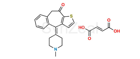 Nome Químico: 4-(1-Methylpiperidin-4-ylidene)-4,9-dihydro-10H-benzo[4,5]cyclohepta[1,2-b]thiophen-10-one hydrogen (E)-butenedioate (as per EP) ; 4-(1-Methylpiperidin-4-ylidene)-4,9-dihydro-10H-benzo[4,5]cyclohepta[1,2-b]thiophen-10-one fumarate (as per USP)