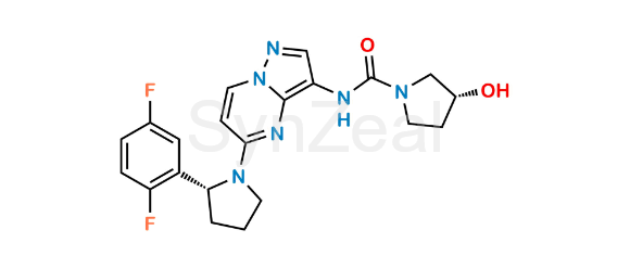Larotrectinib Impurity 13 is chemically (R)-N-(5-((R)-2-(2,5-difluorophenyl)pyrrolidin-1-yl)pyrazolo[1,5-a]pyrimidin-3-yl)-3-hydroxypyrrolidine-1-carboxamide. Larotrectinib Impurity 13 is supplied with detailed characterization data compliant with regulatory guideline. Larotrectinib Impurity 13 can be used for the analytical method development, method validation (AMV), Quality Controlled (QC) application for Abbreviated New Drug Application (ANDA) or during commercial production of Larotrectinib.