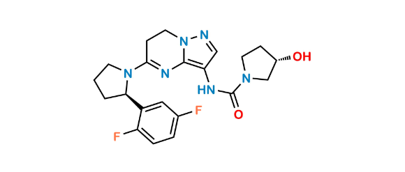 Larotrectinib Impurity 14 is chemically (S)-N-(5-((R)-2-(2,5-difluorophenyl)pyrrolidin-1-yl)-6,7-dihydropyrazolo[1,5-a]pyrimidin-3-yl)-3-hydroxypyrrolidine-1-carboxamide. Larotrectinib Impurity 14 is supplied with detailed characterization data compliant with regulatory guideline. Larotrectinib Impurity 14 can be used for the analytical method development, method validation (AMV), Quality Controlled (QC) application for Abbreviated New Drug Application (ANDA) or during commercial production of Larotrectinib.