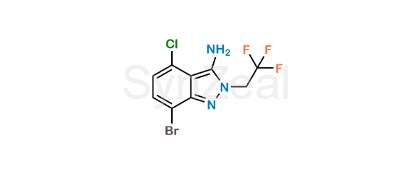 Lenacapavir Impurity 22 is chemically 7-Bromo-4-chloro-2-(2,2,2-trifluoroethyl)-2H-indazol-3-amine. Lenacapavir Impurity 22 is supplied with detailed characterization data compliant with regulatory guideline. Lenacapavir Impurity 22 can be used for the analytical method development, method validation (AMV), Quality Controlled (QC) application for Abbreviated New Drug Application (ANDA) or during commercial production of Lenacapavir.