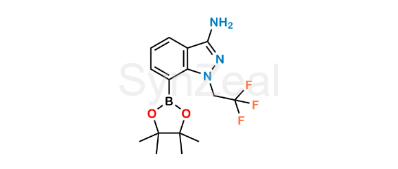 Lenacapavir Impurity 29 is chemically 7-(4,4,5,5-Tetramethyl-1,3,2-dioxaborolan-2-yl)-1-(2,2,2-trifluoroethyl)-1H-indazol-3-amine. Lenacapavir Impurity 29 is supplied with detailed characterization data compliant with regulatory guideline. Lenacapavir Impurity 29 can be used for the analytical method development, method validation (AMV), Quality Controlled (QC) application for Abbreviated New Drug Application (ANDA) or during commercial production of Lenacapavir.