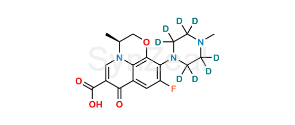 Levofloxacin D8 is chemically (S)-9-fluoro-3-methyl-10-(4-methylpiperazin-1-yl-2,2,3,3,5,5,6,6-d8)-7-oxo-2,3-dihydro-7H-[1,4]oxazino[2,3,4-ij]quinoline-6-carboxylic acid. Levofloxacin D8 is supplied with detailed characterization data compliant with regulatory guideline. Levofloxacin D8 can be used for the analytical method development, method validation (AMV), Quality Controlled (QC) application for Abbreviated New Drug Application (ANDA) or during commercial production of Levofloxacin.