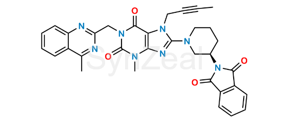 Linagliptin Phthalimide Impurity is chemically (R)-7-(but-2-yn-1-yl)-8-(3-(1,3-dioxoisoindolin-2-yl)piperidin-1-yl)-3-methyl-1-((4-methylquinazolin-2-yl)methyl)-3,7-dihydro-1H-purine-2,6-dione. Linagliptin Phthalimide Impurity is supplied with detailed characterization data compliant with regulatory guideline. Linagliptin Phthalimide Impurity can be used for the analytical method development, method validation (AMV), Quality Controlled (QC) application for Abbreviated New Drug Application (ANDA) or during commercial production of Linagliptin.