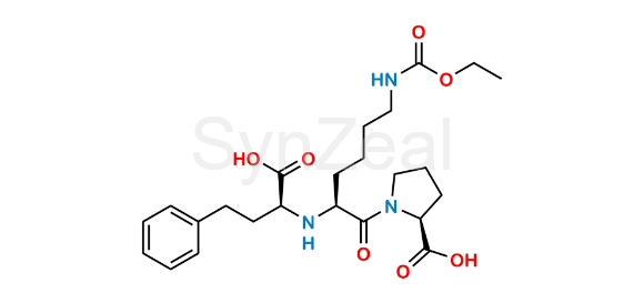 Lisinopril Impurity 1 is chemically N2-((S)-1-carboxy-3-phenylpropyl)-N6-(ethoxycarbonyl)-L-lysyl-L-proline. Lisinopril Impurity 1 is supplied with detailed characterization data compliant with regulatory guideline. Lisinopril Impurity 1 can be used for the analytical method development, method validation (AMV), Quality Controlled (QC) application for Abbreviated New Drug Application (ANDA) or during commercial production of Lisinopril.