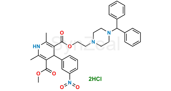 Nome Químico: 3-(2-(4-benzhydrylpiperazin-1-yl)ethyl) 5-methyl 2,6-dimethyl-4-(3-nitrophenyl)-1,4-dihydropyridine-3,5-dicarboxylate dihydrochloride