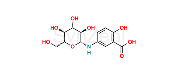 Mesalazine N-β-D-Glucoside is chemically 2-Hydroxy-5-(((2R,3R,4S,5S,6R)-3,4,5-trihydroxy-6-(hydroxymethyl)tetrahydro-2H-pyran-2-yl)amino)benzoic acid. Mesalazine N-β-D-Glucoside is supplied with detailed characterization data compliant with regulatory guideline. Mesalazine N-β-D-Glucoside can be used for the analytical method development, method validation (AMV), Quality Controlled (QC) application for Abbreviated New Drug Application (ANDA) or during commercial production of Mesalazine.