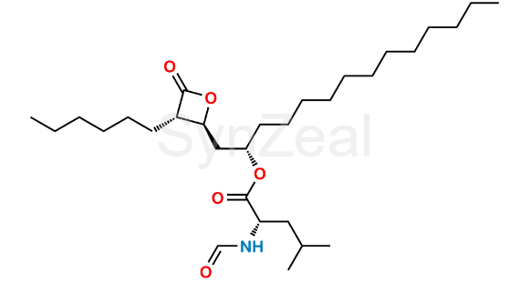 Methyl Orlistat is chemically (S)-1-((2S,3S)-3-hexyl-4-oxooxetan-2-yl)tetradecan-2-yl formyl-L-leucinate. Methyl Orlistat is supplied with detailed characterization data compliant with regulatory guideline. Methyl Orlistat can be used for the analytical method development, method validation (AMV), Quality Controlled (QC) application for Abbreviated New Drug Application (ANDA) or during commercial production of Orlistat .