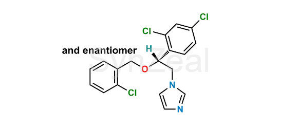 Nome Químico: 1-[(2RS)-2-[[(2-Chlorophenyl)methyl]oxy]-2-(2,4-dichlorophenyl)ethyl]-1H-imidazole (as per EP) ; 1-{2-[(2-Chlorobenzyl)oxy]-2-(2,4-dichlorophenyl)ethyl}-1H-imidazole (as per USP)