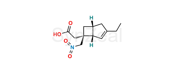 Mirogabalin Impurity 22 is chemically 2-((1S,5R,6R)-3-ethyl-6-(nitromethyl)bicyclo[3.2.0]hept-3-en-6-yl)acetic acid. Mirogabalin Impurity 22 is supplied with detailed characterization data compliant with regulatory guideline. Mirogabalin Impurity 22 can be used for the analytical method development, method validation (AMV), Quality Controlled (QC) application for Abbreviated New Drug Application (ANDA) or during commercial production of Mirogabalin.
