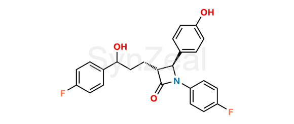 Ezetimibe Impurity 27 is chemically (3R,4S)-1-(4-Fluorophenyl)-3-(3-(4-fluorophenyl)-3-hydroxypropyl)-4-(4-hydroxyphenyl)azetidin-2-one. Ezetimibe Impurity 27 is supplied with detailed characterization data compliant with regulatory guideline. Ezetimibe Impurity 27 can be used for the analytical method development, method validation (AMV), Quality Controlled (QC) application for Abbreviated New Drug Application (ANDA) or during commercial production of Ezetimibe.