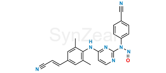 Mononitroso Rilpivirine - II is chemically (E)-N-(4-cyanophenyl)-N-(4-((4-(2-cyanovinyl)-2,6-dimethylphenyl)amino)pyrimidin-2-yl)nitrous amide. Mononitroso Rilpivirine - II is supplied with detailed characterization data compliant with regulatory guideline. Mononitroso Rilpivirine - II can be used for the analytical method development, method validation (AMV), Quality Controlled (QC) application for Abbreviated New Drug Application (ANDA) or during commercial production of Rilpivirine .