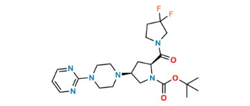 N-Boc Gosogliptin is chemically Tert-butyl (2S,4S)-2-(3,3-difluoropyrrolidine-1-carbonyl)-4-(4-(pyrimidin-2-yl)piperazin-1-yl)pyrrolidine-1-carboxylate. N-Boc Gosogliptin is supplied with detailed characterization data compliant with regulatory guideline. N-Boc Gosogliptin can be used for the analytical method development, method validation (AMV), Quality Controlled (QC) application for Abbreviated New Drug Application (ANDA) or during commercial production of Gosogliptin.