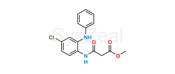 N-Desmethyl O-Methyl Clobazam is chemically Methyl 3-((4-chloro-2-(phenylamino)phenyl)amino)-3-oxopropanoate. N-Desmethyl O-Methyl Clobazam is supplied with detailed characterization data compliant with regulatory guideline. N-Desmethyl O-Methyl Clobazam can be used for the analytical method development, method validation (AMV), Quality Controlled (QC) application for Abbreviated New Drug Application (ANDA) or during commercial production of Clobazam.
