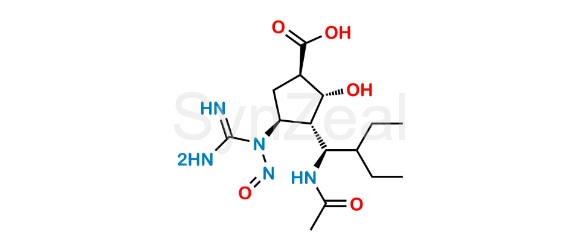 N-Nitroso (+)-Ent-Peramivir is chemically (1R,2R,3R,4S)-3-((R)-1-Acetamido-2-ethylbutyl)-2-hydroxy-4-(1-nitrosoguanidino)cyclopentane-1-carboxylic acid. N-Nitroso (+)-Ent-Peramivir is supplied with detailed characterization data compliant with regulatory guideline. N-Nitroso (+)-Ent-Peramivir can be used for the analytical method development, method validation (AMV), Quality Controlled (QC) application for Abbreviated New Drug Application (ANDA) or during commercial production of Peramivir.
