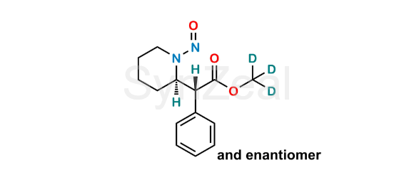 N-Nitroso Methylphenidate D3 is chemically Methyl-d3 (R)-2-((R)-1-nitrosopiperidin-2-yl)-2-phenylacetate. N-Nitroso Methylphenidate D3 is supplied with detailed characterization data compliant with regulatory guideline. N-Nitroso Methylphenidate D3 can be used for the analytical method development, method validation (AMV), Quality Controlled (QC) application for Abbreviated New Drug Application (ANDA) or during commercial production of Methylphenidate.