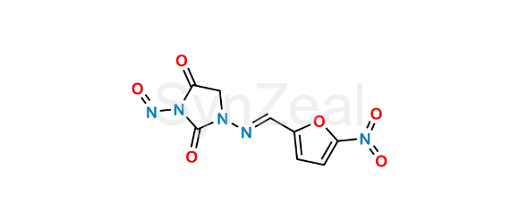 N-Nitroso Nitrofurantoin is chemically 1-(((5-Nitrofuran-2-yl)methylene)amino)-3-nitrosoimidazolidine-2,4-dione. N-Nitroso Nitrofurantoin is supplied with detailed characterization data compliant with regulatory guideline. N-Nitroso Nitrofurantoin can be used for the analytical method development, method validation (AMV), Quality Controlled (QC) application for Abbreviated New Drug Application (ANDA) or during commercial production of Nitrofurantoin.