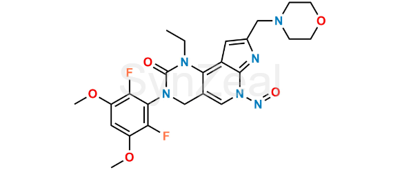N-Nitroso Pemigatinib is chemically 3-(2,6-difluoro-3,5-dimethoxyphenyl)-1-ethyl-8-(morpholinomethyl)-6-nitroso-1,3,4,6-tetrahydro-2H-pyrrolo[3',2':5,6]pyrido[4,3-d]pyrimidin-2-one. N-Nitroso Pemigatinib is supplied with detailed characterization data compliant with regulatory guideline. N-Nitroso Pemigatinib can be used for the analytical method development, method validation (AMV), Quality Controlled (QC) application for Abbreviated New Drug Application (ANDA) or during commercial production of Pemigatinib.