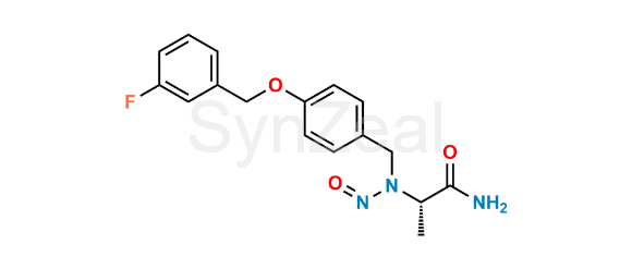 N-Nitroso Safinamide is chemically (S)-2-((4-((3-Fluorobenzyl)oxy)benzyl)(nitroso)amino)propanamide. N-Nitroso Safinamide is supplied with detailed characterization data compliant with regulatory guideline. N-Nitroso Safinamide can be used for the analytical method development, method validation (AMV), Quality Controlled (QC) application for Abbreviated New Drug Application (ANDA) or during commercial production of Safinamide.