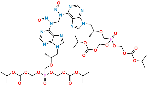 N-Nitroso Tenofovir Disoproxil Dimer is chemically tetraisopropyl (((((((2R,2'R)-((methylenebis(nitrosoazanediyl))bis(9H-purine-6,9-diyl))bis(propane-1,2-diyl))bis(oxy))bis(methylene))bis(oxo-l5-phosphanetriyl))tetrakis(oxy))tetrakis(methylene)) tetracarbonate. N-Nitroso Tenofovir Disoproxil Dimer is supplied with detailed characterization data compliant with regulatory guideline. N-Nitroso Tenofovir Disoproxil Dimer can be used for the analytical method development, method validation (AMV), Quality Controlled (QC) application for Abbreviated New Drug Application (ANDA) or during commercial production of Tenofovir.