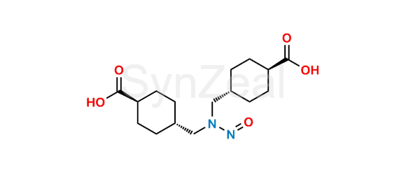 N-Nitroso Tranexamic Acid EP Impurity A is chemically (1R,1'R,4r,4'r)-4,4'-((Nitrosoazanediyl)bis(methylene))bis(cyclohexane-1-carboxylic acid). N-Nitroso Tranexamic Acid EP Impurity A is supplied with detailed characterization data compliant with regulatory guideline. N-Nitroso Tranexamic Acid EP Impurity A can be used for the analytical method development, method validation (AMV), Quality Controlled (QC) application for Abbreviated New Drug Application (ANDA) or during commercial production of Tranexamic Acid.