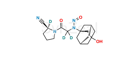 N-Nitroso Vildagliptin D3 (Possibility 2) is chemically N-(2-((S)-2-cyanopyrrolidin-1-yl-2-d)-2-oxoethyl-1,1-d2)-N-((1r,3R,5R,7S)-3-hydroxyadamantan-1-yl)nitrous amide. N-Nitroso Vildagliptin D3 (Possibility 2) is supplied with detailed characterization data compliant with regulatory guideline. N-Nitroso Vildagliptin D3 (Possibility 2) can be used for the analytical method development, method validation (AMV), Quality Controlled (QC) application for Abbreviated New Drug Application (ANDA) or during commercial production of Vildagliptin.
