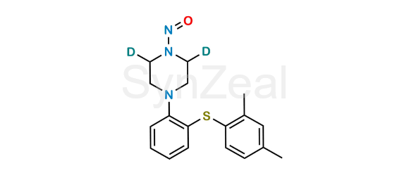 N-Nitroso Vortioxetine D2 is chemically 1-(2-((2,4-dimethylphenyl)thio)phenyl)-4-nitrosopiperazine-3,5-d2. N-Nitroso Vortioxetine D2 is supplied with detailed characterization data compliant with regulatory guideline. N-Nitroso Vortioxetine D2 can be used for the analytical method development, method validation (AMV), Quality Controlled (QC) application for Abbreviated New Drug Application (ANDA) or during commercial production of Vortioxetine.
