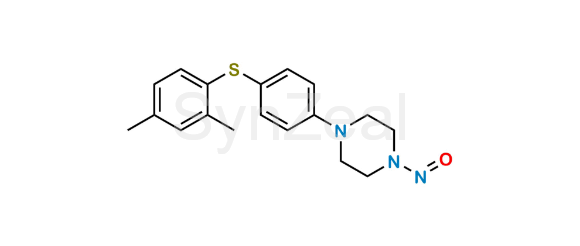 N-Nitroso Vortioxetine Impurity 1 is chemically 1-(4-((2,4-Dimethylphenyl)thio)phenyl)-4-nitrosopiperazine. N-Nitroso Vortioxetine Impurity 1 is supplied with detailed characterization data compliant with regulatory guideline. N-Nitroso Vortioxetine Impurity 1 can be used for the analytical method development, method validation (AMV), Quality Controlled (QC) application for Abbreviated New Drug Application (ANDA) or during commercial production of Vortioxetine.