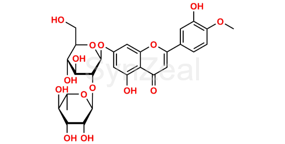 Nome Químico: 7-[[2-O-(6-deoxy-α-L-mannopyranosyl)-β-D-glucopyranosyl]oxy]-5-hydroxy-2-(3-hydroxy-4-methoxyphenyl)-4H-1-benzopyran-4-one (as per EP & USP)