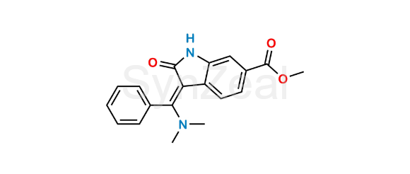 Nintedanib N, N-Dimethyl Amine is chemically Methyl 3-((dimethylamino)(phenyl)methylene)-2-oxoindoline-6-carboxylate. Nintedanib N, N-Dimethyl Amine is supplied with detailed characterization data compliant with regulatory guideline. Nintedanib N, N-Dimethyl Amine can be used for the analytical method development, method validation (AMV), Quality Controlled (QC) application for Abbreviated New Drug Application (ANDA) or during commercial production of Nintedanib.