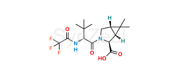 Nirmatrelvir Impurity 34 is chemically (1R,2S,5S)-3-((S)-3,3-dimethyl-2-(2,2,2-trifluoroacetamido)butanoyl)-6,6-dimethyl-3-azabicyclo[3.1.0]hexane-2-carboxylic acid. Nirmatrelvir Impurity 34 is supplied with detailed characterization data compliant with regulatory guideline. Nirmatrelvir Impurity 34 can be used for the analytical method development, method validation (AMV), Quality Controlled (QC) application for Abbreviated New Drug Application (ANDA) or during commercial production of Nirmatrelvir.