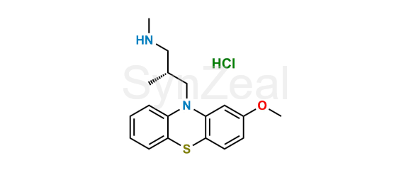 Norlevo Mepromazine Hydrochloride is chemically (R)-3-(2-methoxy-10H-phenothiazin-10-yl)-N,2-dimethylpropan-1-amine hydrochloride. Norlevo Mepromazine Hydrochloride is supplied with detailed characterization data compliant with regulatory guideline. Norlevo Mepromazine Hydrochloride can be used for the analytical method development, method validation (AMV), Quality Controlled (QC) application for Abbreviated New Drug Application (ANDA) or during commercial production of Levomepromazine .