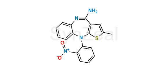 Olanzapine Impurity 12 is chemically 2-Methyl-10-(2-nitro phenyl)-10H-benzo[b]thieno[2,3-e][1,4]diazepin-4-amine. Olanzapine Impurity 12 is supplied with detailed characterization data compliant with regulatory guideline. Olanzapine Impurity 12 can be used for the analytical method development, method validation (AMV), Quality Controlled (QC) application for Abbreviated New Drug Application (ANDA) or during commercial production of Olanzapine.