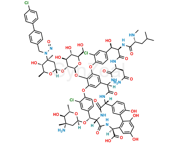 Oritavancin Nitroso Impurity 2 is chemically . Oritavancin Nitroso Impurity 2 is supplied with detailed characterization data compliant with regulatory guideline. Oritavancin Nitroso Impurity 2 can be used for the analytical method development, method validation (AMV), Quality Controlled (QC) application for Abbreviated New Drug Application (ANDA) or during commercial production of Oritavancin.