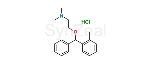 Orphenadrine Hydrochloride is chemically N,N-Dimethyl-2-(phenyl(o-tolyl)methoxy)ethan-1-amine hydrochloride. Orphenadrine Hydrochloride is supplied with detailed characterization data compliant with regulatory guideline. Orphenadrine Hydrochloride can be used for the analytical method development, method validation (AMV), Quality Controlled (QC) application for Abbreviated New Drug Application (ANDA) or during commercial production of Orphenadrine.
