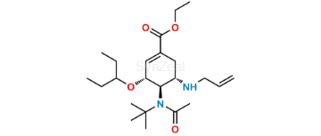Oseltamivir Amino Hydroxy Impurity is chemically Ethyl (3R,4S,5R)-5-amino-4-hydroxy-3-(pentan-3-yloxy)cyclohex-1-ene-1-carboxylate. Oseltamivir Amino Hydroxy Impurity is supplied with detailed characterization data compliant with regulatory guideline. Oseltamivir Amino Hydroxy Impurity can be used for the analytical method development, method validation (AMV), Quality Controlled (QC) application for Abbreviated New Drug Application (ANDA) or during commercial production of Oseltamivir.