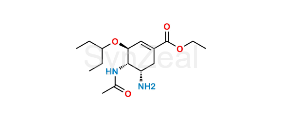 Oseltamivir Impurity 50 is chemically Ethyl (3S,4S,5S)-4-acetamido-5-amino-3-(pentan-3-yloxy)cyclohex-1-ene-1-carboxylate. Oseltamivir Impurity 50 is supplied with detailed characterization data compliant with regulatory guideline. Oseltamivir Impurity 50 can be used for the analytical method development, method validation (AMV), Quality Controlled (QC) application for Abbreviated New Drug Application (ANDA) or during commercial production of Oseltamivir.