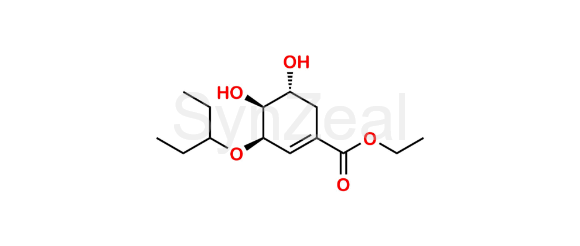 Oseltamivir Impurity 55 is chemically Ethyl (3R,4S,5R)-4,5-dihydroxy-3-(pentan-3-yloxy)cyclohex-1-ene-1-carboxylate. Oseltamivir Impurity 55 is supplied with detailed characterization data compliant with regulatory guideline. Oseltamivir Impurity 55 can be used for the analytical method development, method validation (AMV), Quality Controlled (QC) application for Abbreviated New Drug Application (ANDA) or during commercial production of Oseltamivir.