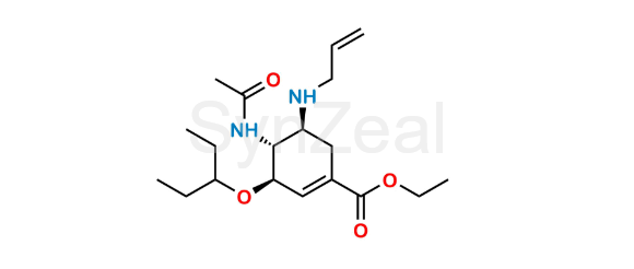 Oseltamivir Impurity 63 is chemically Ethyl (3R,4R,5S)-4-acetamido-5-(allylamino)-3-(pentan-3-yloxy)cyclohex-1-ene-1-carboxylate. Oseltamivir Impurity 63 is supplied with detailed characterization data compliant with regulatory guideline. Oseltamivir Impurity 63 can be used for the analytical method development, method validation (AMV), Quality Controlled (QC) application for Abbreviated New Drug Application (ANDA) or during commercial production of Oseltamivir.