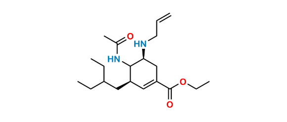 Oseltamivir Mono Allyl Impurity is chemically Ethyl (3R,5S)-4-acetamido-5-(allylamino)-3-(2-ethylbutyl)cyclohex-1-ene-1-carboxylate. Oseltamivir Mono Allyl Impurity is supplied with detailed characterization data compliant with regulatory guideline. Oseltamivir Mono Allyl Impurity can be used for the analytical method development, method validation (AMV), Quality Controlled (QC) application for Abbreviated New Drug Application (ANDA) or during commercial production of Oseltamivir.