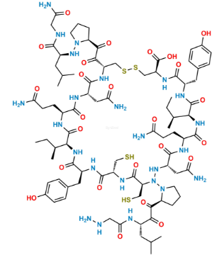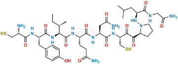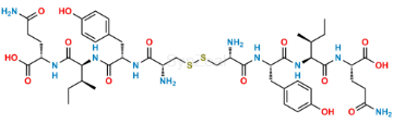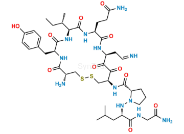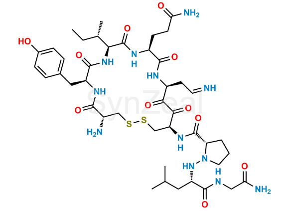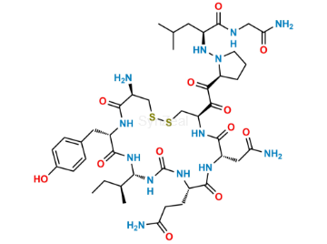 Oxytocin Imine is chemically (S)-N-((4R,7S,10S,13S,16S,19R)-4-amino-13-(3-amino-3-oxopropyl)-10-((S)-sec-butyl)-7-(4-hydroxybenzyl)-16-(2-iminoethyl)-5,8,11,14,17,18-hexaoxo-1,2-dithia-6,9,12,15-tetraazacycloicosan-19-yl)-1-(((S)-1-((2-amino-2-oxoethyl)amino)-4-methyl-1-oxopentan-2-yl)amino)pyrrolidine-2-carboxamide. Oxytocin Imine is supplied with detailed characterization data compliant with regulatory guideline. Oxytocin Imine can be used for the analytical method development, method validation (AMV), Quality Controlled (QC) application for Abbreviated New Drug Application (ANDA) or during commercial production of Oxytocin.