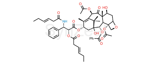 Paclitaxel Impurity 5 is chemically (4S,4aS,6R,9S,11S,12S,12bS)-12-(benzoyloxy)-9-(((2R,3S)-3-((E)-hex-3-enamido)-2-(((E)-hex-3-enoyl)oxy)-3-phenylpropanoyl)oxy)-4,11-dihydroxy-4a,8,13,13-tetramethyl-5-oxo-3,4,4a,5,6,9,10,11,12,12a-decahydro-1H-7,11-methanocyclodeca[3,4]benzo[1,2-b]oxete-6,12b(2aH)-diyl diacetate. Paclitaxel Impurity 5 is supplied with detailed characterization data compliant with regulatory guideline. Paclitaxel Impurity 5 can be used for the analytical method development, method validation (AMV), Quality Controlled (QC) application for Abbreviated New Drug Application (ANDA) or during commercial production of Paclitaxel.