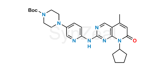 Palbociclib Desacetyl N-BOC Analog is chemically Tert-butyl 4-(6-((8-cyclopentyl-5-methyl-7-oxo-7,8-dihydropyrido[2,3-d]pyrimidin-2-yl)amino)pyridin-3-yl)piperazine-1-carboxylate. Palbociclib Desacetyl N-BOC Analog is supplied with detailed characterization data compliant with regulatory guideline. Palbociclib Desacetyl N-BOC Analog can be used for the analytical method development, method validation (AMV), Quality Controlled (QC) application for Abbreviated New Drug Application (ANDA) or during commercial production of Palbociclib.