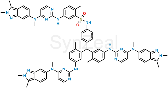 Nome Químico: N-(4-(Bis(5-((4-((2,3-dimethyl-2H-indazol-6-yl)(methyl)amino)pyrimidin-2-yl)amino)-2-methylphenyl)methyl)phenyl)-5-((4-((2,3-dimethyl-2H-indazol-6-yl)(methyl)amino)pyrimidin-2-yl)amino)-2-methylbenzenesulfonamide