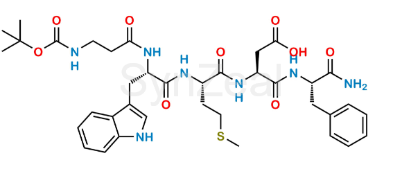 Pentagastrin is chemically (10S,13S,16S)-10-((1H-indol-3-yl)methyl)-16-(((S)-1-amino-1-oxo-3-phenylpropan-2-yl)carbamoyl)-2,2-dimethyl-13-(2-(methylthio)ethyl)-4,8,11,14-tetraoxo-3-oxa-5,9,12,15-tetraazaoctadecan-18-oic acid. Pentagastrin is supplied with detailed characterization data compliant with regulatory guideline. Pentagastrin can be used for the analytical method development, method validation (AMV), Quality Controlled (QC) application for Abbreviated New Drug Application (ANDA) or during commercial production of Pentagastrin .
