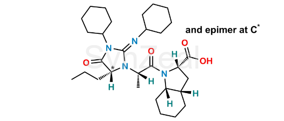 Nome Químico: (2S,3aS,7aS)-1-[(2S)-2-[(5RS)-3-cyclohexyl-2-(cyclohexylimino)-4-oxo-5-propylimidazolidin-1-yl]propanoyl]octahydro-1H-indole-2-carboxylic acid (as per EP)